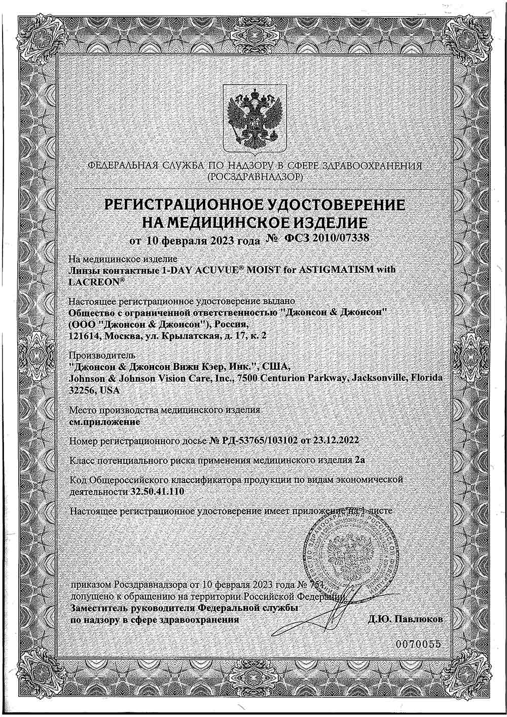 Астигматизм — это одна из самых частых причин низкого зрения. При этом недуге врачи-офтальмологи рекомендуют носить очки с цилиндрическими стеклами, либо торические контактные линзы. Бренд Acuvue выпустил специальные оптические изделия для людей с астигматизмом — 1-Day Moist for Astigmatism. Они обеспечат отличное зрение на всех расстояниях и в любое время суток, а также подарят непревзойденный комфорт глазам при ношении.