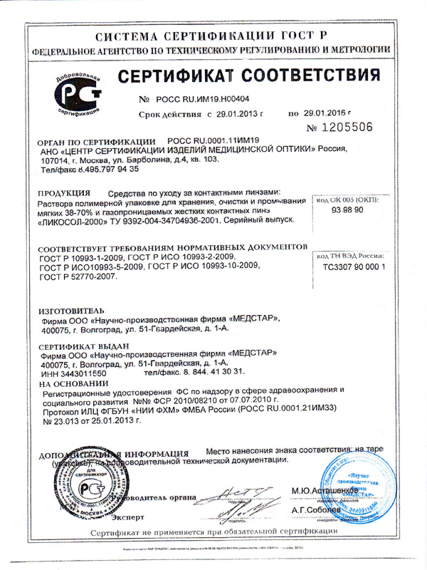 Раствор для линз Ликосол 2000 240 мл