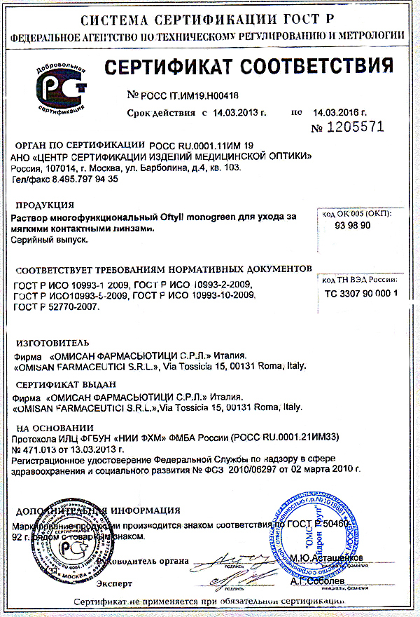 Описание "Раствор для линз Oftyll Monogreen 360 мл"